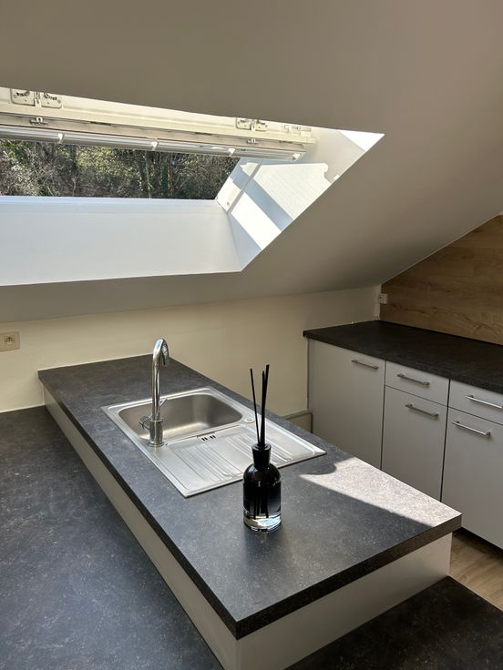 Appt 2 ch - baignoire/douche - petite terrasse - cave - chauffage au gaz de ville. Petite mezzanine - proche de la gare de Huy - 2eme étage sans ascenseur. Interdit aux chiens. Libre le 1/04.