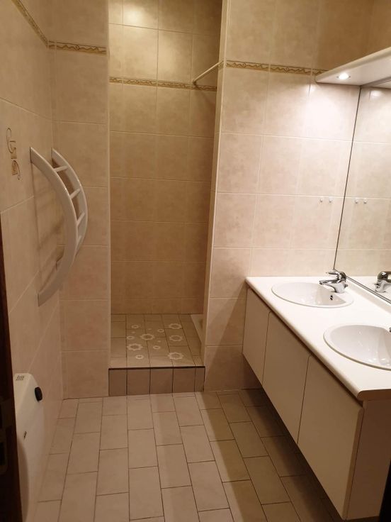 Côté nuit, le hall vous conduit vers une salle de bain de 6m2 avec coin douche et meuble éviers ainsi que deux chambres de 12 et 13m2 équipe de volets.