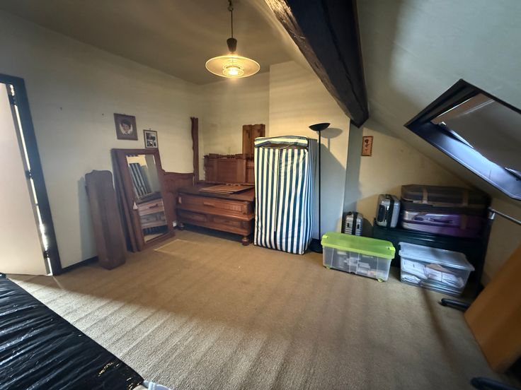 Enfin, au deuxième étage, un vaste grenier a été aménagé en deux chambres spacieuses, avec la possibilité d’en créer une troisième selon vos besoins.