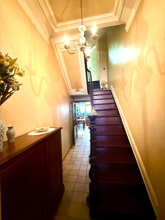 Dès l’entrée, un spacieux hall vous mène vers un lumineux living et une cuisine entièrement équipée, incluant électroménagers, table et chaises.