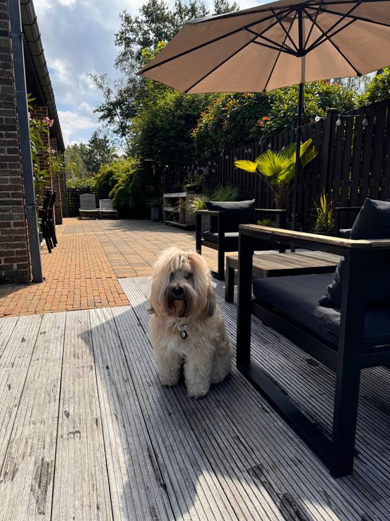 -stijlvolle, onderhoudsvriendelijke afgesloten tuin met 4 terrassen : groot overdekt terras ZW oriëntatie