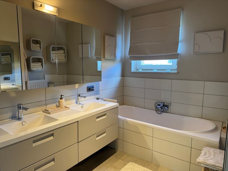 -badkamer met ligbad, regendouche en dubbele lavabo op het gelijkvloers( +punt )