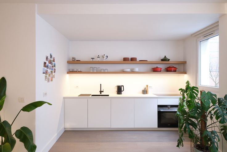 Op de eerste verdieping kom je binnen via de centrale hal. Van hieruit wandel je verder door naar de leefruimte met open keuken. Hier zie je onmiddellijk de stempel die interieurarchitecte Sophie Thielemans heeft gedrukt: het design van de keuken is een echte eye-catcher! Door de grote raampartijen met veel lichtinval is het hier heerlijk vertoeven. De keuken beschikt tevens over alle inbouwtoestellen zoals koelkast, diepvriezer, vaatwasser en oven/magnetron.