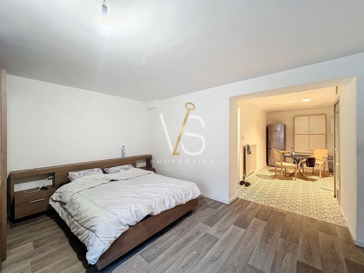 A l'entre sol, vous trouverez également un grand espace de +-56m2 remis à neuf et aménagé actuellement en studio