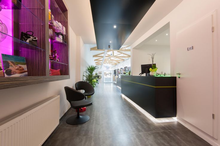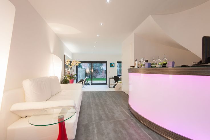 Confort : Rayonnage, comptoir d'accueil, salon d'attente.