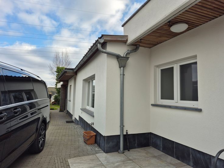 De eigendom beschikt over een grote oprit die vijf auto's kan herbergen, wat het parkeren vergemakkelijkt.