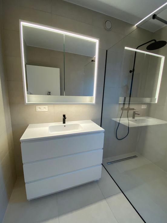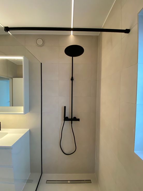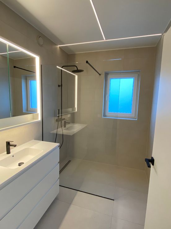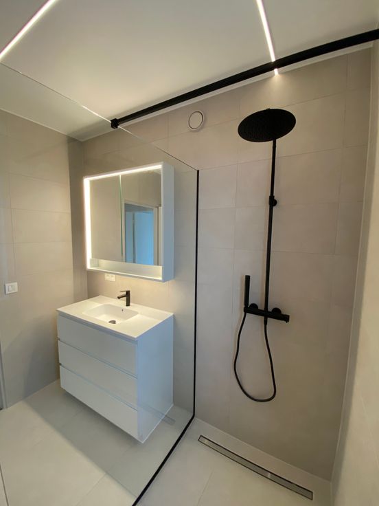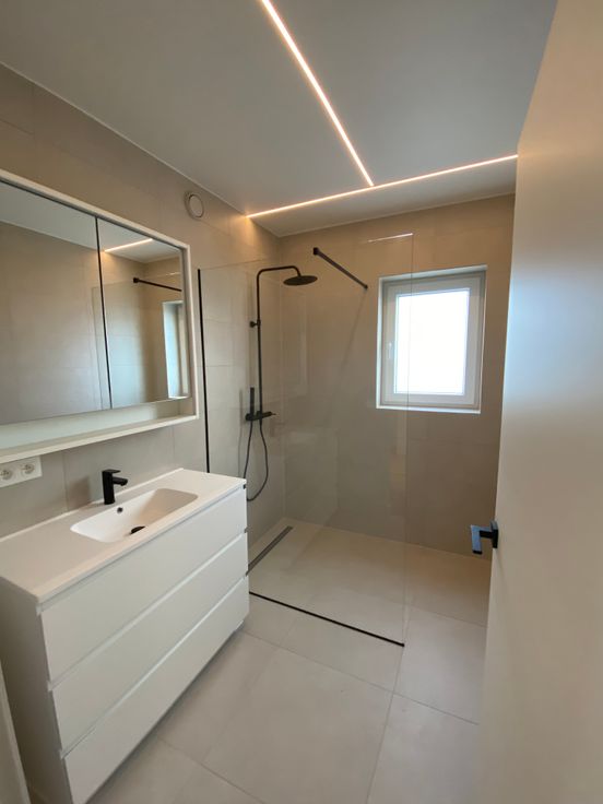 Badkamer met inloopdouche en regendouchekop.