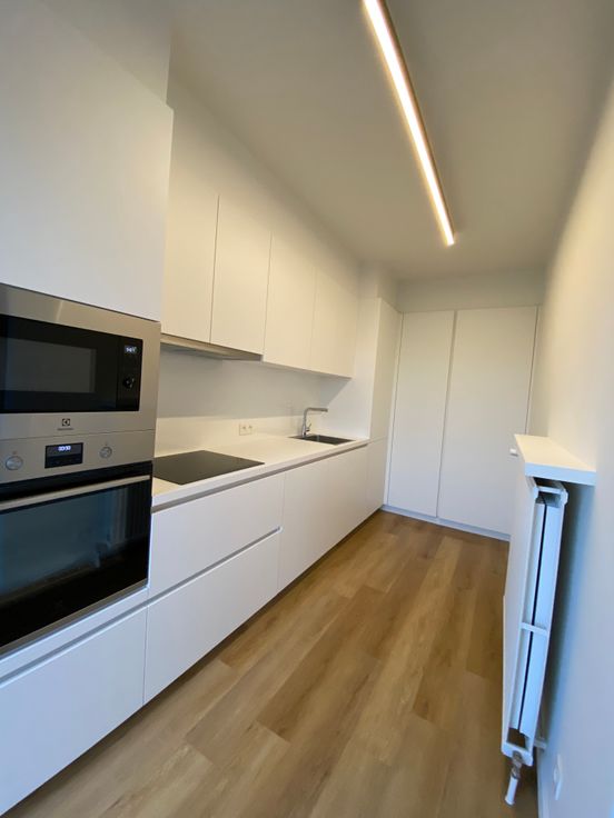 Onmiddellijk beschikbaar. 950 euro huur + 50 euro garage + 50 euro gemeenschappelijke kosten.