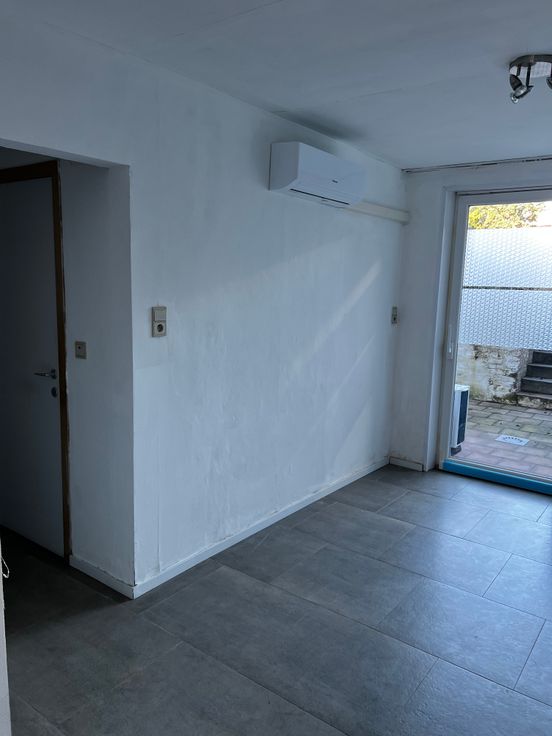 Pas in orde gezette studio. Bestaande uit een living, keuken, badkamer met ligbad en wc, terras en tuintje. De studio is voorzien van een warmtepomp die zowel kan koelen als verwarmen.
