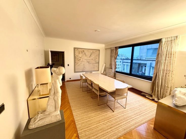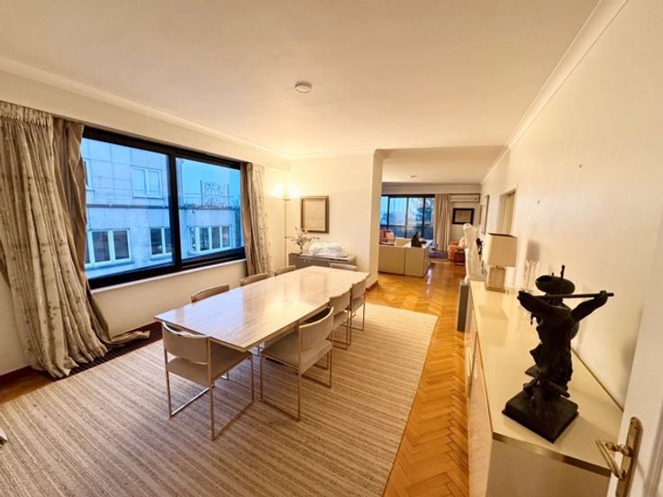 VENDU EN 48H Uccle à proximité du rond point Churchill, des commerces, transports, superbe appartement arrière au calme situé au sixième étage sur 7 composé : hall d'entrée, vestiaire avec placards, wc visiteur, superbe living de +/- 36 m² en parquet avec feu ouvert, belle terrasse de +/- 20 m² sud, belle salle à manger en parquet de +/- 22 m², cuisine super équipée avec entrée de service de +/- 14 m² avec terrasse, hall de nuit avec placards, deux chambres en parquet avec placards (+/- 13 et 15 m²), salle de bain avec wc, chambre des maitres en parquet de +/- 30 m² avec dressing, salle de bain avec wc et chambre. En sous sol grande cave et possibilité deux grands garages box (45.000 € pièce). Double vitrage, porte blindée, parquet, nombreux placards. PEB : E. A visiter sans tarder Macnash sud 02/347.11.47 sud@macnash.com