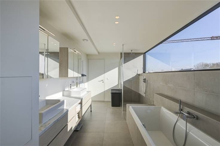 Een ruime overloop die nog een extra functie kan krijgen (bureau, leeshoek, speelhoek,...), een master bedroom van 16m² met toegang tot het dakterras en directe toegang tot een dressing en badkamer die uitgerust is met een ligbad, inloopdouche en stijlvol badkamermeubel. Verder zijn er nog twee slaapkamers van 19m² waarvan er één momenteel is ingericht als thuisbioscoop. Er