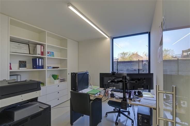 Deze recente moderne woning is gelegen nabij het centrum van Nijlen en biedt tal van mogelijkheden. Op heden is de combinatie wonen/werken van toepassing en is de extra ruimte voorzien als bureelruimte. De woning is ideaal voor een vrij beroeper, voor iemand die een praktijkruimte nodig heeft, of een zelfstandige die nood heeft aan een bureel (of burelen) aan huis. De burelen het woongedeelte beschikken beiden over een ander kadastraal nummer. De mogelijkheid bestaat uiteraard ook om er één zeer ruime gezinswoning van te maken. Er is voldoende parkeerplaats voorzien achteraan de woning voor cliënteel en/of personeel.