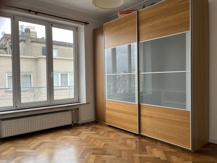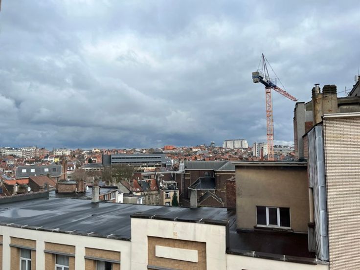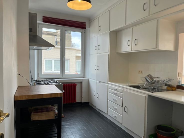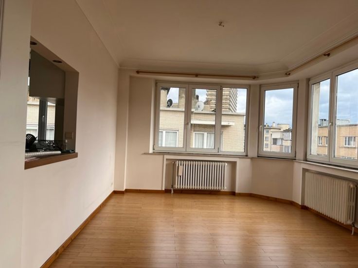 Op de bovenste verdieping van een jaren '50 gebouw, met uitzicht over de daken van Brussel, vindt u dit zeer ruime appartement van ±110m².