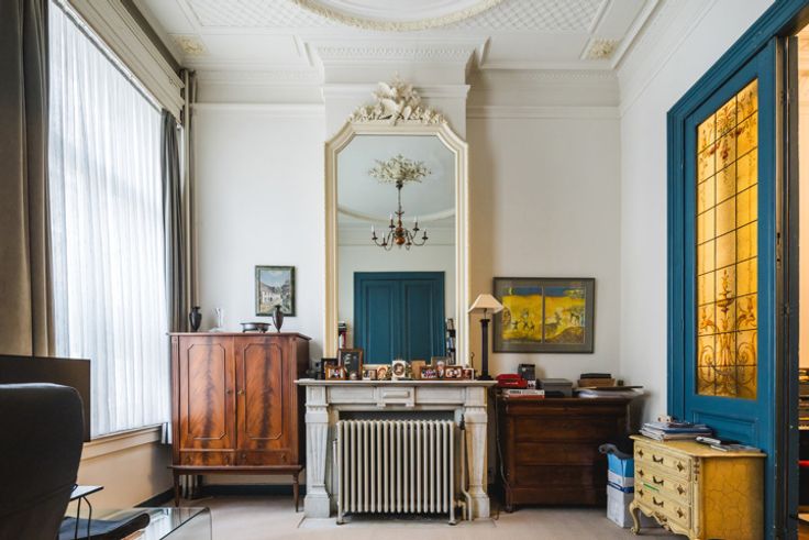 Tegenover het Borgerhoutse landmark, de Sint-Janskerk ofwel ‘de Peperbus’, die momenteel wordt gerestaureerd. De straat is rustig, met fijne buren en gezellige straatfeesten. Om de hoek lonken het levendige Krugerplein en Bar Leon. Ook andere hippe bars, restaurantjes en lunchbars, kunstgalerijen, winkels, …, wat men hier BOHO noemt, zijn kenmerken van de diverse buurt. En ook in de Roma, op het Moorkensplein, de Dageraadplaats en het Centraal Station sta je in een vingerknip. Gebouwd als dé dokterswoning van Borgerhout eind negentiende eeuw. Denk dus aan een statig herenhuis, en de kans is groot dat je een woning zoals deze voor je ogen ziet: majestueus, boordevol authentieke elementen en met een waanzinnnige glas-in-loodkoepel zoals je maar zelden tegenkomt. Met 420m2 aan bewoonbare oppervlakte heb je hier alle ruimte om je plannen waar te maken, terwijl de aanzienlijke gevelbreedte zorgt voor extra veel lichtinval. De impressionante, hoge hal met prachtige wandschilderingen en vloertegels (uit de tegenoverliggende kerk), loopt helemaal door tot aan de grote, weelderige tuin. Links ligt de geschakelde, driedelige leefruimte – moulures, hoge plafonds, marmeren sierschouwen, parketvloeren, authentieke spiegels en deuren met brandglasramen, .. you name it – met achteraan de schitterende glazen koepel en zalig zicht op de tuin. Aan de andere kant van de hal: de ruime leefkeuken met alle toestellen die je nodig hebt. Dankzij de L-vorm van de woning heb je hier een magnifieke