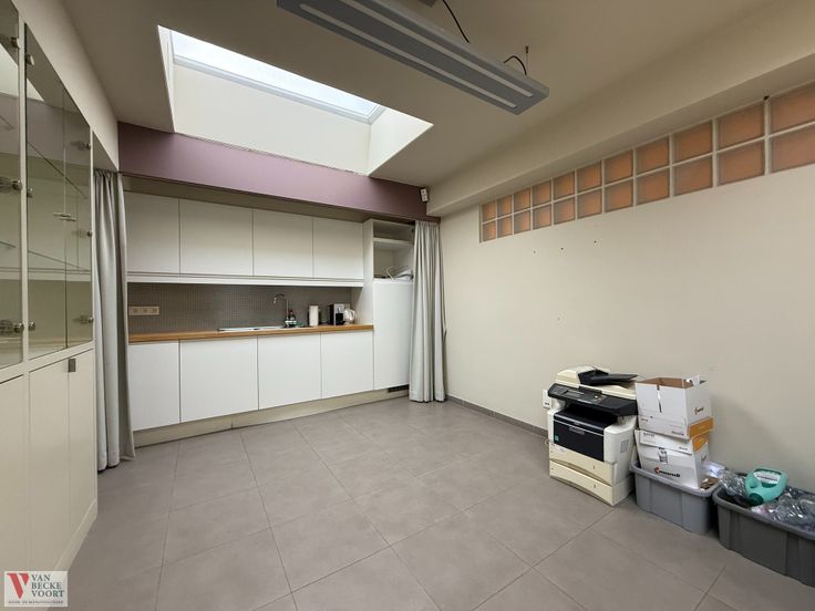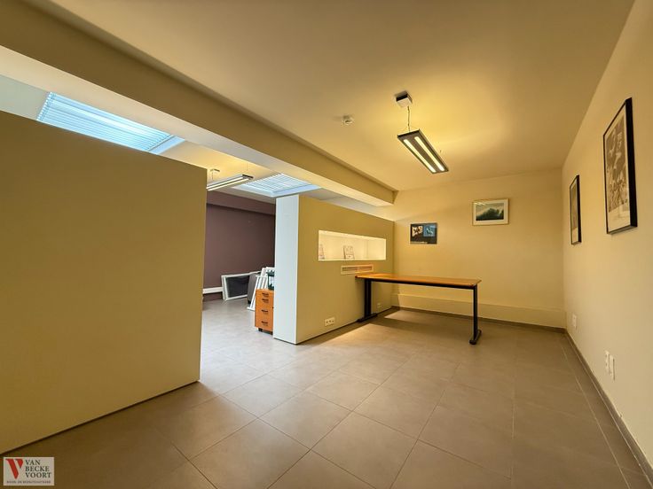 Het gelijkvloers is actueel opgesplitst in verschillende praktijk-/kantoorruimtes: bureau vooraan met aparte ingang 26m² - onthaal en wachtzaal 36m² - berging - toilet - keuken 15m² - bureau achteraan 35m² en een kelder 45m² in de ondergrond.