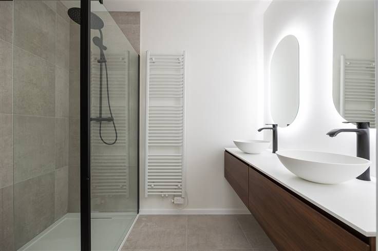 Nieuwbouwappartement met drie slaapkamers, ruim terras en garage of staanplaats Welkom in Residentie 108. Gelegen nabij het centrum van Ravels bevindt zich dit kleinschalig nieuwbouwcomplex met vier appartementen: G0: Gelijkvloersappartement (124m²) met drie slaapkamers, tuin en garage V1: Nieuwbouwappartement (95m²) met drie slaapkamers en ruim terras en garage of staanplaats IN OPTIE: V2: Nieuwbouwappartement (95m²) met drie slaapkamers en ruim terras en garage of staanplaats V3: Duplexappartement (65m²) met één slaapkamer en terras Achteraan het gebouw bevinden zich de vier garageboxen en drie autostaanplaatsen. Nabij winkels (AD Delhaize, Aldi), scholen, openbaar vervoer (bushalte) en invalswegen. Vanuit de gemeenschappelijke inkomhal betreden we het appartement via de lift of trap. De inkomhal geeft toegang tot de verschillende ruimtes. De enorm ruime woonkamer geniet van veel lichtinval door de grote raampartijen en westelijke oriëntatie van de achtergevel. De open keuken (Vasco keukens) met kookeiland is voorzien van een combi-oven, inductie kookplaat, dampkap, ijskast, vaatwasser en spoeltafel. Aparte berging aanwezig met hierin de voorzieningen aanwezig voor het verluchtingssysteem type C en aansluitingen voor wasmachine en droogkast. De woonkamer geeft alsook toegang tot het zonnige terras, en geniet van een rustige uitkijk. De badkamer is voorzien van een ruime inloopdouche en badkamerme