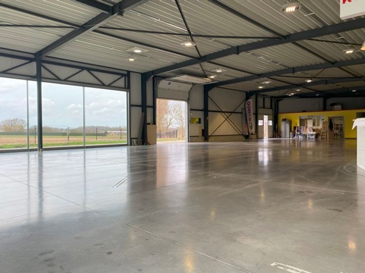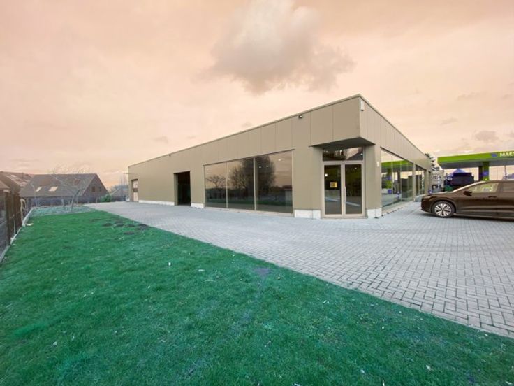 Showroom/Bedrijfspand van 920 m² op strategische locatie langs de verbindingsweg tussen Wolvertem en Merchtem. Uitstekende bereikbaarheid dankzij de nabijheid van de A12 en de op- en afrit van Meise.