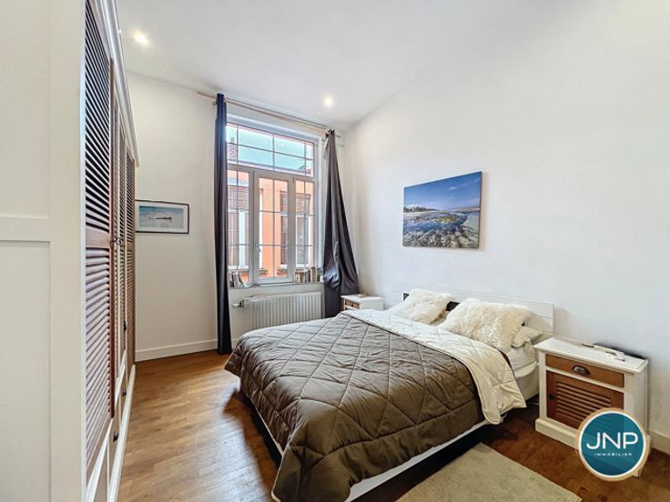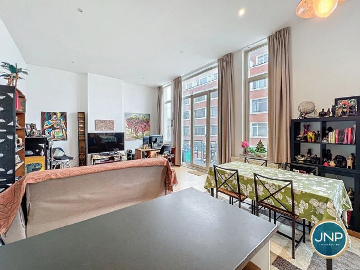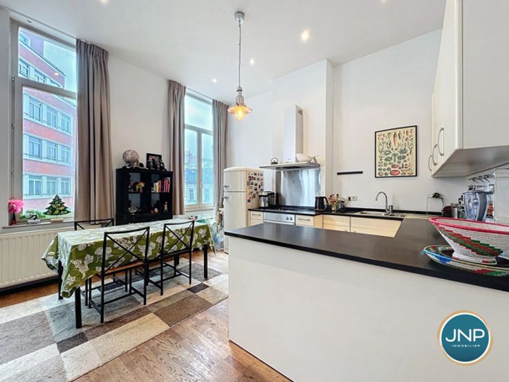 JNP Immobilier heeft het genoegen deze prachtige flat met 2 slaapkamers in een prachtig Art Deco gebouw te presenteren! Dit lichte appartement ligt op de 3e verdieping, dicht bij alle voorzieningen, winkels, vervoer, scholen en parken. Het appartement bestaat uit een inkomhal met vestiaire, een lichte woonkamer met balkon, een open ingerichte keuken, een lange nachthal die leidt naar 2 slaapkamers met elk een eigen badkamer, een apart toilet, een wasruimte en een privékelder. Technische kenmerken: EPB E-, conforme elektriciteit, volledig gerenoveerde gevel, gasketel, individuele meters, lage gemeenschappelijke kosten. De flat is momenteel verhuurd. Wacht niet langer, kom en ontdek deze charmante flat! Bel voor meer informatie en een bezichtiging 0800/82.043 of stuur een e-mail naar info@jnp.immo