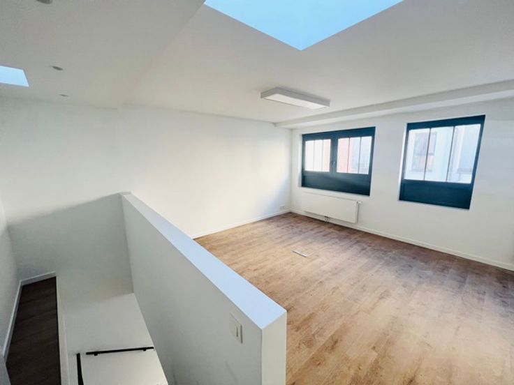 SCHAERBEEK - Eerste bewoning - Ideaal gelegen vlakbij het station van Schaarbeek, in een aangename straat, op een binneneiland, KANTOOR (1 douchekamer/1 toilet) volledig gerenoveerd in duplexconfiguratie. Fietsenberging met stopcontact. Individuele meters voor water, gas en elektriciteit. Gemeenschappelijke lasten: 50 euro/maand. Beschikbaar per direct. Ontdek het bij L&P!