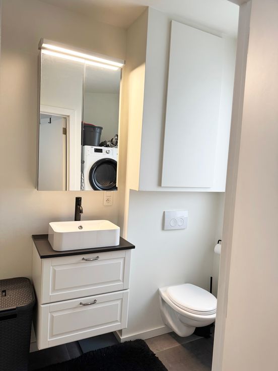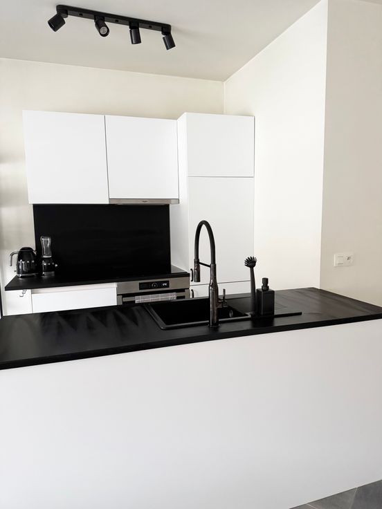 Mogelijkheid tot overnemen meubels (raamdecoratie, wasmachine, tv-meubel, lampen, zetel, tafel, stoelen en droogkast)