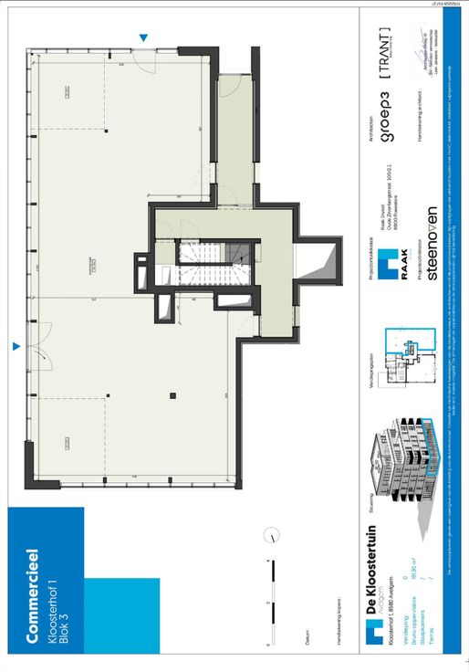 Deze ruime commerciële ruimte bevindt zich in het uitzonderlijke nieuwbouwproject De Kloostertuin. De Kloostertuin ligt pal naast de Scheldemeersen met groene landschappen zo ver je kunt zien. Er vertrekken tal van wandelingen om de mooie natuur in de omgeving te verkennen.