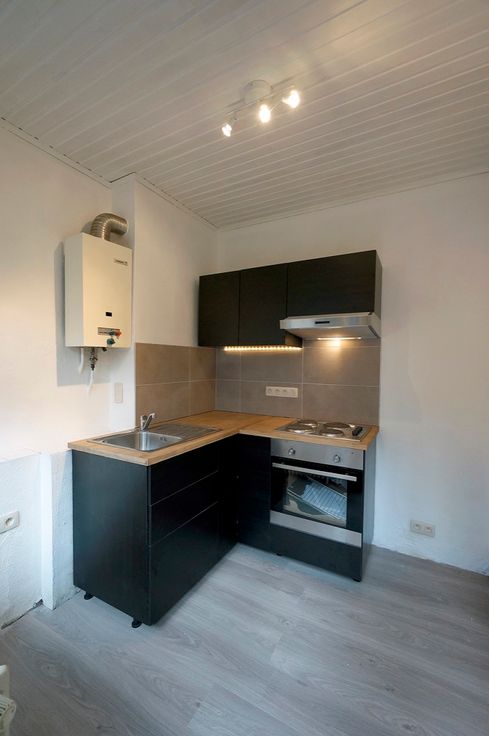 Beau, grand et agréable STUDIO avec 1 pièce de vie (LIVING/CHAMBRE) + 1 CUISINE 1/2 équipée (sans frigo) + 1 SDB et WC + 1 Pt. DRESSING emplacement MACHINE A LAVER & SECHOIR + 1 GARAGE 4,60 x 2,50 m - avec porte automatique et un grande CAVE donnant sur le JARDIN (ENV.60 M2) et sur les caves intérieures. Compteurs Eau - Gaz et Electricité individuels. Arrêt du NOUVEAU TRAM et Petit MAGASIN alimentation générale A PROXIMITE.