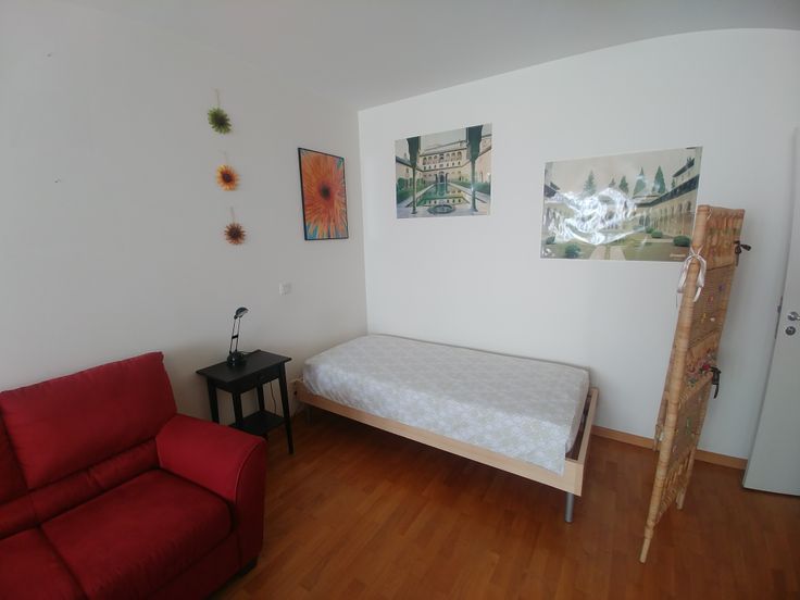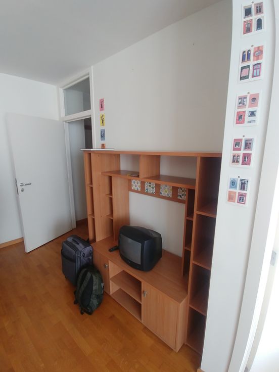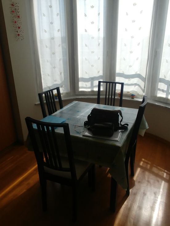 Lit 140x200. Table et 4 chaises dans le coin sam.