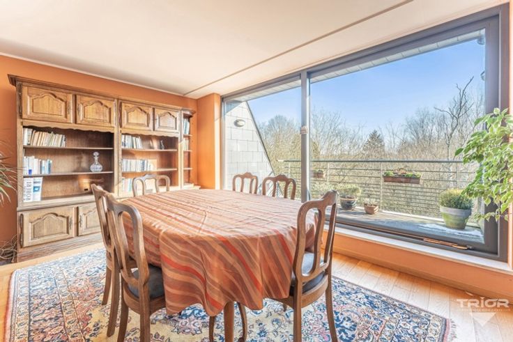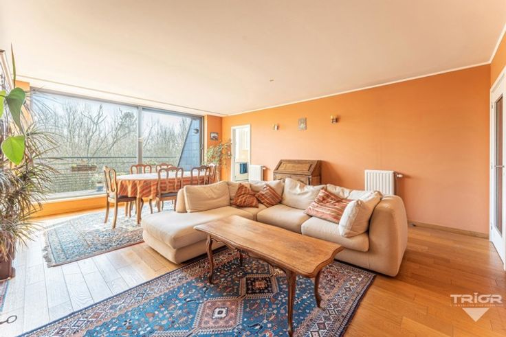 TRIOR WATERLOO a le plaisir de vous proposer cet appartement rare, offrant une situation exceptionnelle à distance à pied du centre de Waterloo et de toutes les facilités (commerces, transports,...). Situé au 2ème et dernier étage d'un petit immeuble construit en 2006, l'appartement est en très bon état d'entretien et développe une surface habitable de 100m² répartie comme suit : en partie de jour, hall d'entrée avec vestiaire, agréable séjour (33m²) donnant sur une terrasse offrant une vue dégagée et une tranquillité absolue, cuisine (9m²) séparée et super-équipée et arrière cuisine/buanderie. En partie de nuit, on trouve 2 chambres très confortables (17, 14m²) chacune avec leur pièce d'eau attenante. Un cave privative en sous-sol complète l'appartement. DIVERS : PEB/B - Chauffage central au gaz (Bulex 2022) - Châssis double vitrage aluminium - Local à vélos - Charges = 240€/mois (communs + fonds de réserve),... Emplacement de parking privatif en sous-sol (supplément obligatoire pour 20.000€). A découvrir rapidement sur www.TRIOR.be
