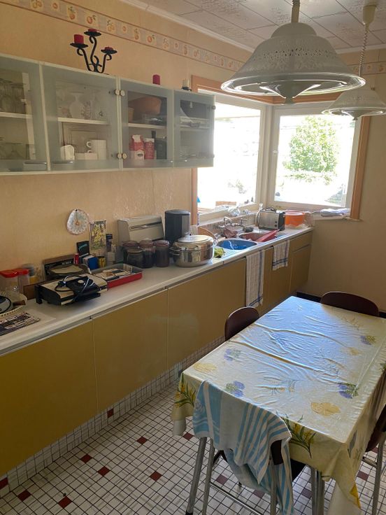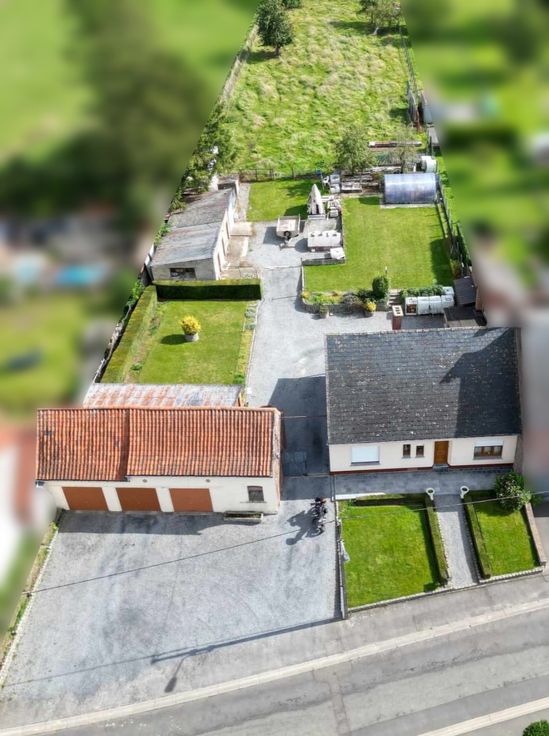 Maison d'habitation avec 4 chambres, 2 sdb, 2 wc, 3 garages loues sur le devant, un propre à l'habitation, 2 caves, un grenier , feux ouvert et nombreuses dépendances sur 32 ares