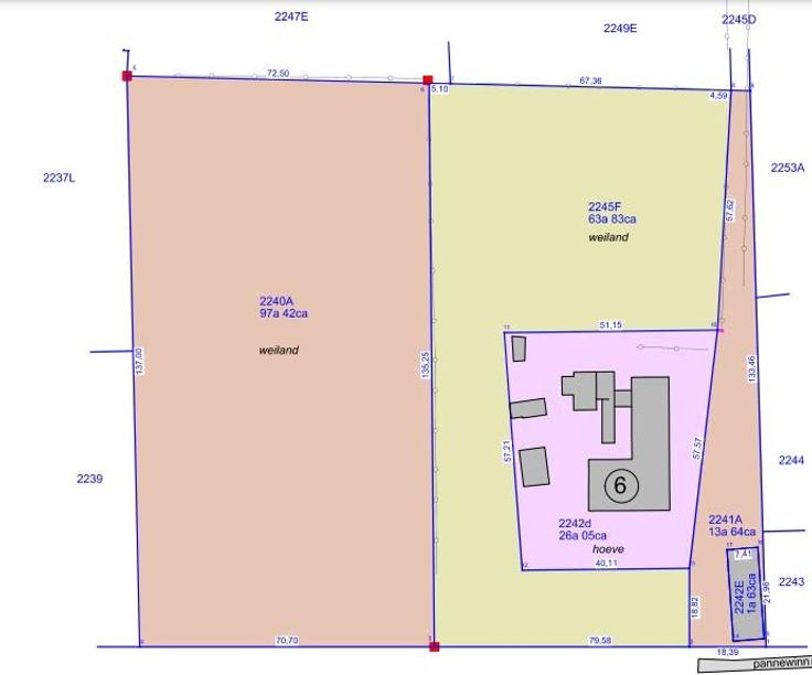 Dit pand wordt op internet verkocht van 17/04/2025 tot 25/04/2025. Goed gelegen perceel landbouwgrond met een oppervlakte van 98a 10ca. Ten kadaster gekend Lummen, 2e afdeling, sectie D, nummer 2240A P0000 (kadastrale legger en plan te raadplegen bij de documenten van het goed), te bereiken via een veldweg die aansluit op de Pannewinningstraat. Vrij van gebruik. Gelegen in landschappelijk waardevol agrarisch gebied. P score: A
