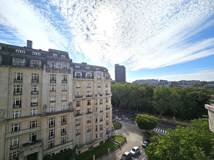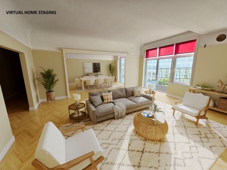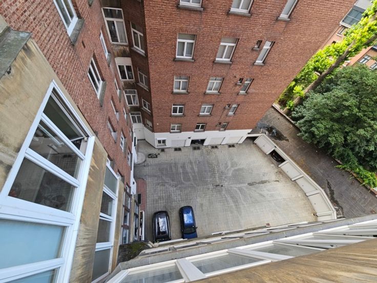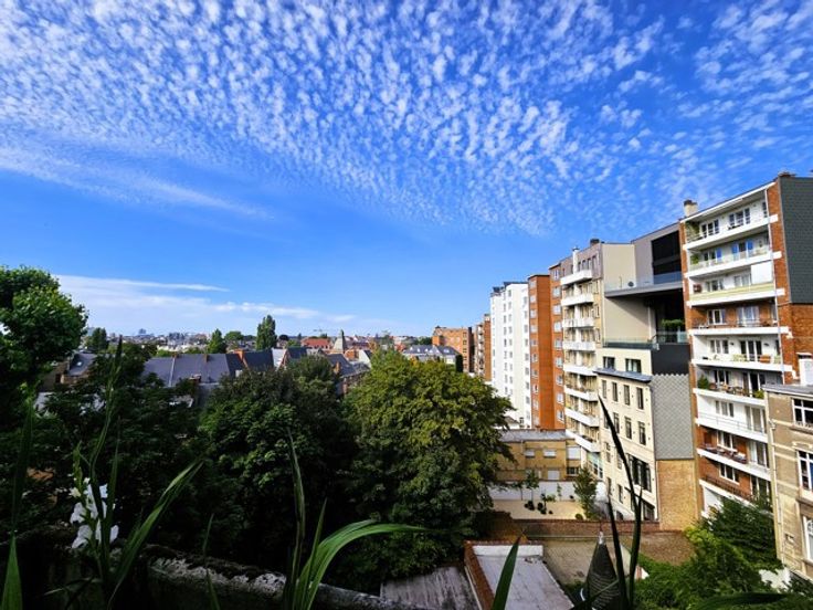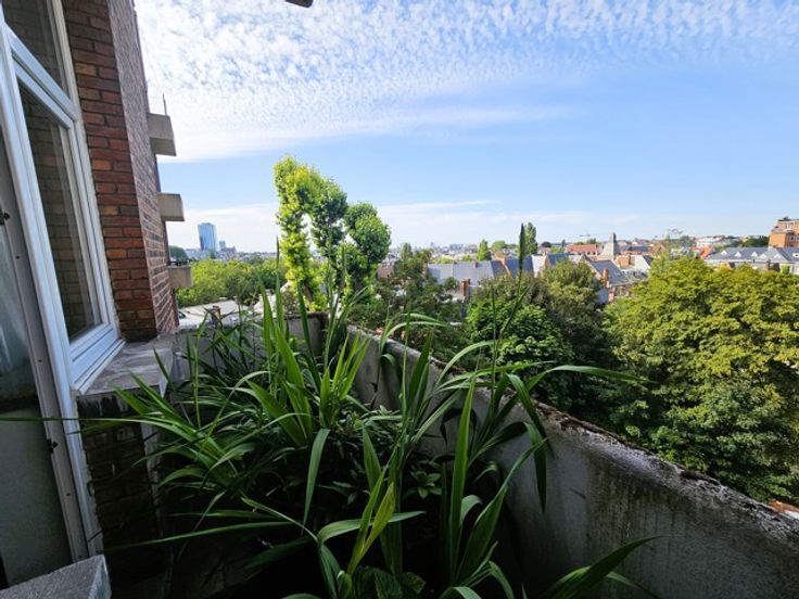 TE KOOP : ELSENE, op de 6e verdieping van een gebouw uit 1936, prachtig oversteek appartement, 4 slaapkamers, 235 m² + 2 kelders + 2 zolders + 1 garage, gerenoveerd in 2010, in een doodlopende laan in de onmiddellijke nabijheid van de Terkamerenabdij.