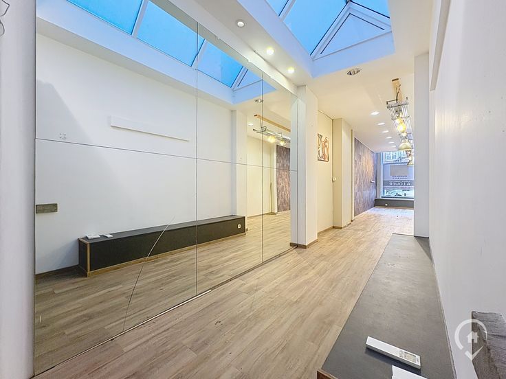Il est composé d'un vaste espace ouvert de +/- 40m², d'un espace de stockage de +/-16m², d'un espace rangement/essayage de +/-10m² et d'un WC indépendant.