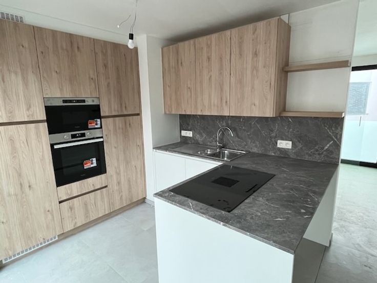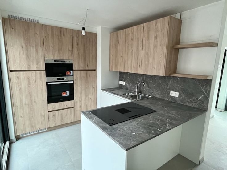Ontdek dit prachtige en zonnige nieuwbouw BEN-appartement, compleet met autostaanplaats, aparte kelderberging en aparte fietsenberging. Gelegen in residentie 'Lovenhof' op een toplocatie aan de groene vesten, vlakbij het centrum, winkels en andere voorzieningen. Gelegen op de tweede verdieping. De inkomhal biedt ruimte voor een vestiairekast en leidt via een glazen deur naar de lichtrijke leefruimte (32,5 m²). Hier zorgt een groot schuifraam voor een vlotte overgang naar het zonnige terras (4,5 m²). De open maatkeuken is een echte blikvanger, voorzien van een kookeiland, inductiekookplaat, combi-oven, microgolfoven, koelkast met vriesvak, vaatwasser en veel kastruimte. Tevens is er een aparte berging met aansluiting voor wasmachine en droogkast, een gastentoilet met lavabo en een stijlvolle badkamer met ruime inloopdouche, regensproeier, badkamermeubel met opbergruimte en spiegel met LED-verlichting. De ruime slaapkamer (14,5 m²) biedt alle comfort. Het hele appartement is voorzien van vloerverwarming, collectieve zonnepanelen en heeft een uitstekende EPB-score van slechts 28, wat garant staat voor een zeer energiezuinig verbruik. Bovendien is het volledig geschilderd en instapklaar. Ondergronds beschik je over een private autostaanplaats en een aparte kelderberging. Daarnaast is er een afgesloten ruimte voor twee fietsen.