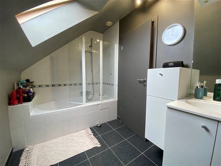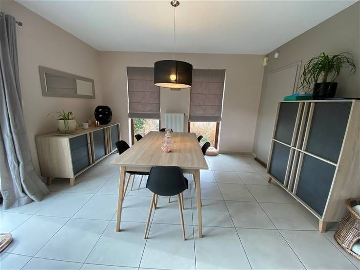 Vous retrouverez au rez-de-chaussée un hall d'entrée avec vestiaire et wc séparé, un grand living lumineux, une cuisine full-équipée ainsi qu'un garage avec espace buanderie.