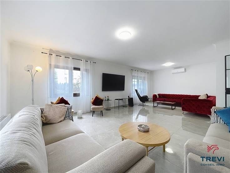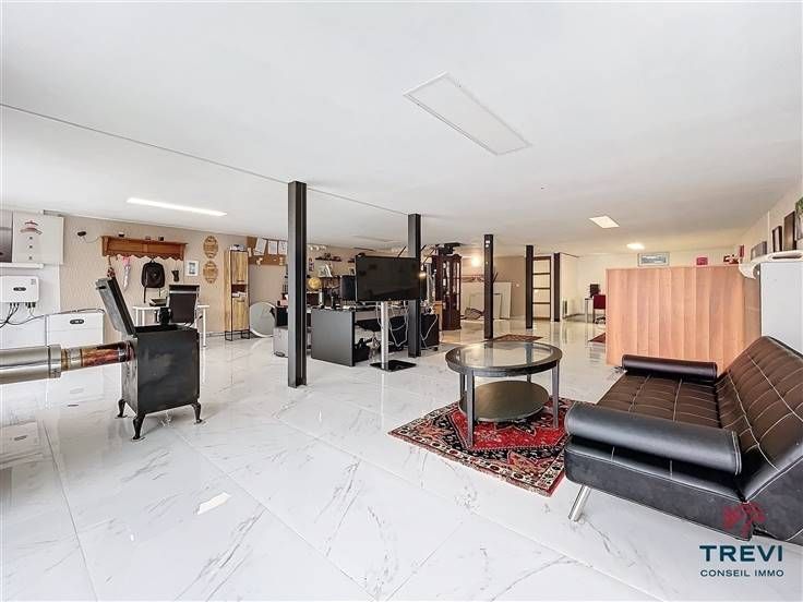 Sorry er is geen nederlandse vertaling beschikbaar. Belle villa de plain pied entièrement rénovée proposant 3 chambres et un beau jardin ainsi qu'un grand sous sol de près de 100 m2 ouvert idéal pour l'activité professionnelle ou une maison kangourou. Le rez de chaussée se compose d'un vaste hall d'entrée joliment carrelé vers le grand séjour de 40 m2. Vaste hall vers la cuisine toute équipée récente et son joli îlot déjeuner accès au jardin et à la terrasse. 3 belles chambres sous plancher stratifié et une vaste salle de bain équipée dune baignoire ovale thalasso, dune douche, d'une toilette et d'un meuble double vasques. Accès au sous sol de près de 100 m2 carrelé avec salle de douche et toilette. Car port. Belle allée vers la maison récente avec portail. Double vitrage pvc récent et volets. 2 poêlés à bois. Chaudière au gaz et chauffage électrique Unité de pompe a chaleur dans le séjour. PEB C. Installation de panneaux photovoltaiques (15). Faire offre à partir de 395.000€. Infos et visites au 02/355.50.55.