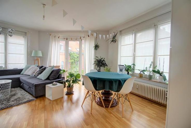 ATOM agency Audrey 0477 68 98 20 VIDEO: https://youtu.be/wQ-LcZ6q62M A Watermael-Boitsfort à deux pas de la Place Weiner, dans une rue calme non loin des grands axes, universités et transports. Charmant appartement de +/- 85m² situé au 2ème étage, dans une petite copropriété sans ascenseur. Celui-ci est disposé comme suit: Grand hall d'entrée avec toilette et vestiaire invité, cuisine équipée (four, frigo, congélateur, taque et hotte) avec petite terrasse, salon et salle à manger avec balcon. Hall de nuit desservant deux grandes chambre de +/- 15m² et une salle de bains avec emplacement pour machine. Chauffage au gaz central avec calorimètre, double vitrage, Charges: 175€ pour les communs, le chauffage privatif et provision pour l'eau.