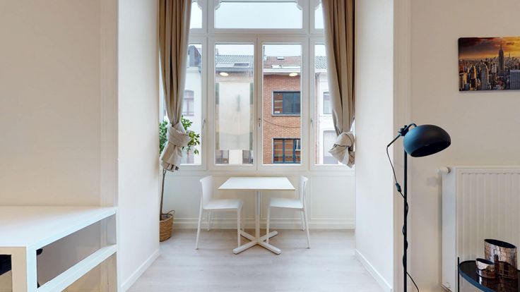 staat Residentie Konstantia. Deze 11 studio’s in de Justus Lipsiusstraat vormen de perfecte oplossing voor universiteits- en doctoraatstudenten en internationale studenten die op zoek zijn naar een ruime, hoogwaardig afgewerkte thuis. Deze studio’s zijn volledig nieuw, ze zijn voorzien van een hoogwaardige afwerking en beantwoorden daardoor aan de strenge energienormen. Ze bevinden zich bovendien in een historisch waardevol gebouw met beschermde voorgevel. Kortom, studio’s die indruk maken, ook op het eerste gezicht. Deze perfect gerenoveerde businessflat is uitgerust met alle comfort. Eigen sanitair en keuken beschikbaar. Het terras is een mooi extraatje. Ideaal voor studenten of de werkende mens.