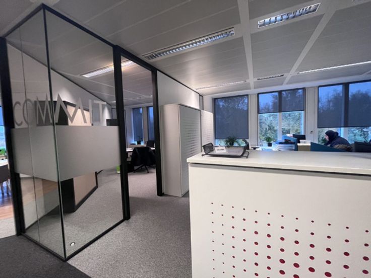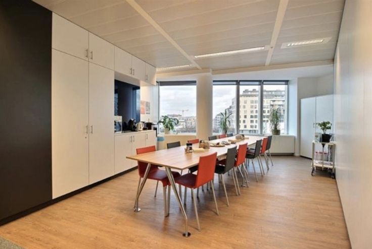 Het kantoor van een totale oppervlakte van 492m² beschikt over flexibele werkplekken en aparte vergaderzalen en kantoren.