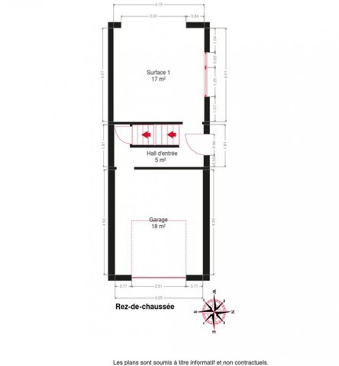 A rénover au rez-de-chaussée, elle se compose d'un hall, un salon, 4 chambres, un garage et un jardinet. Electricité à refaire.