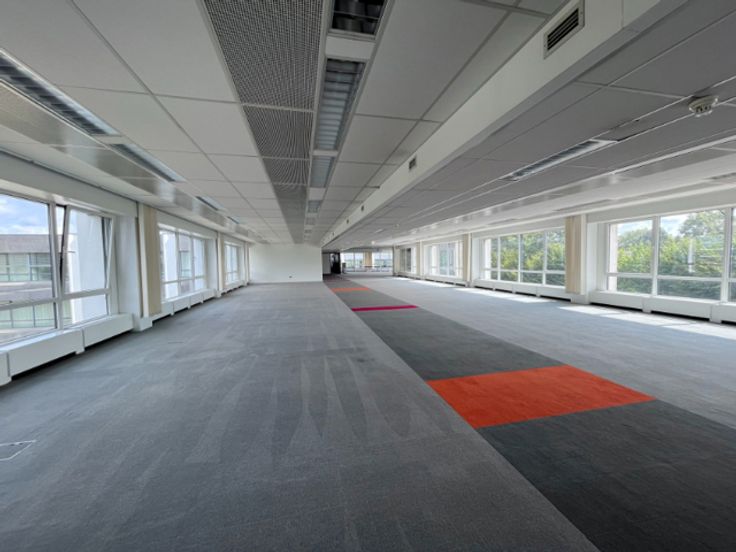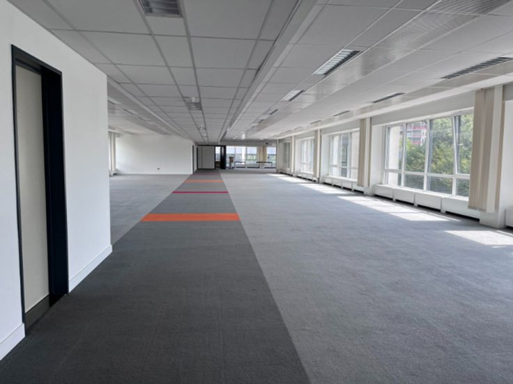 Het kantoorgebouw heeft verschillende ruimtes beschikbaar. Op de eerste en tweede verdieping is 280m² ruimte beschikbaar. De beschikbare ruimte op het centrale plateau is 850m².