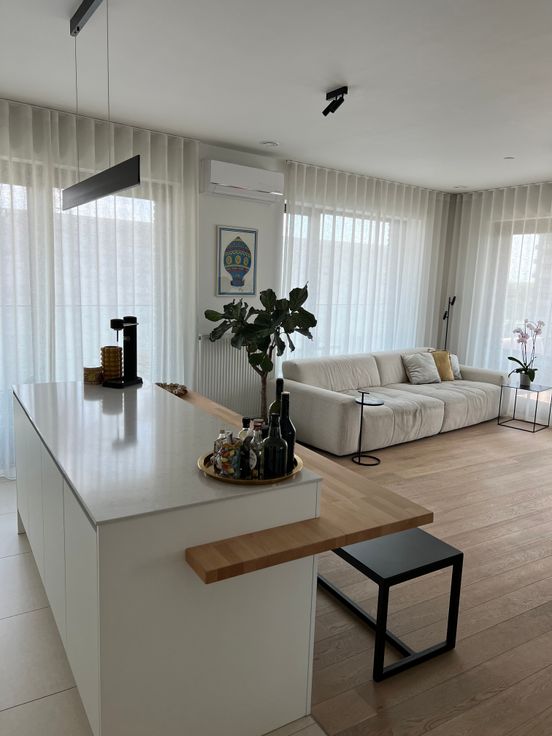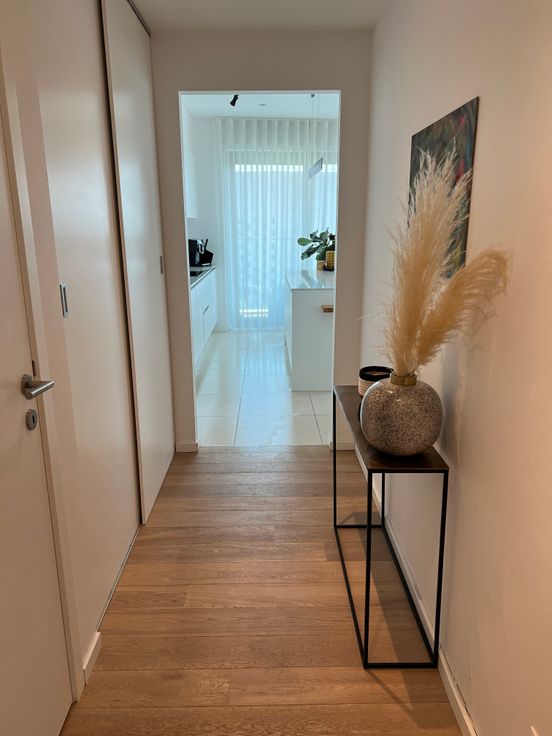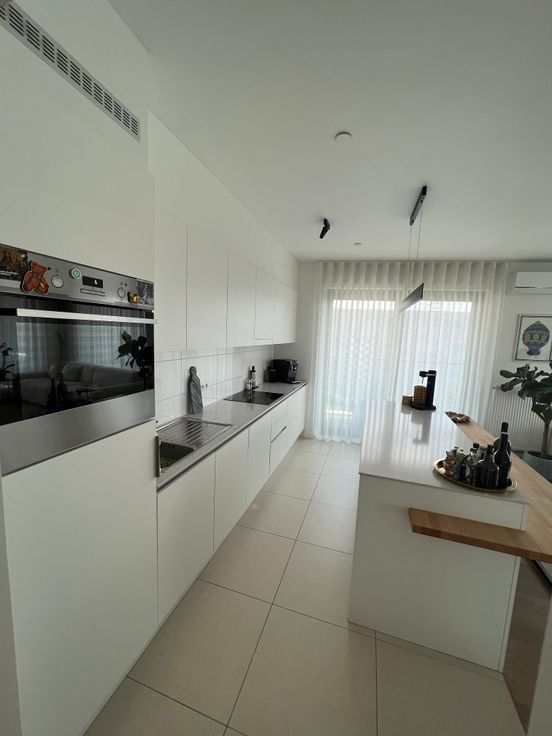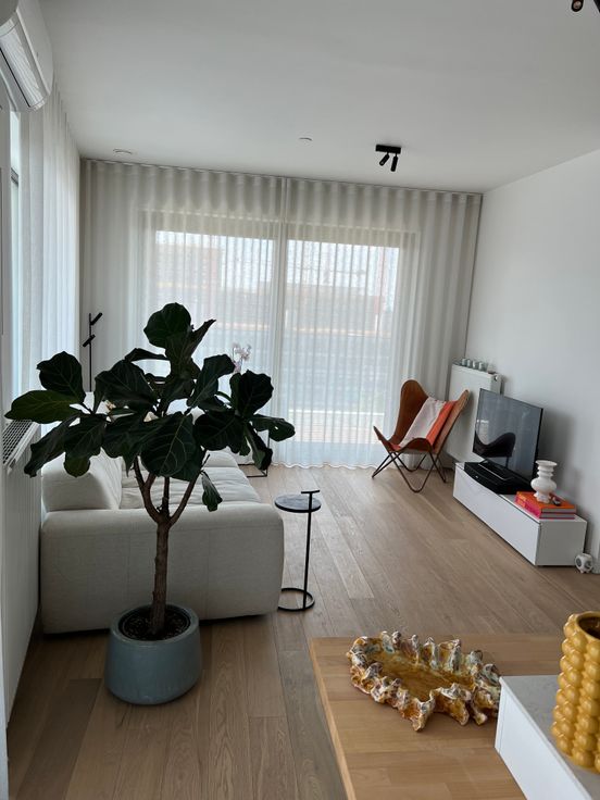 Zuiders hoekappartement op het zalige Nieuw Zuid. 1 slaapkamer en 1 kamer ingericht als dressing. De badkamer heeft een ligbad en douche. Airco is voorzien in de living voor hopelijk snel terug warmere dagen! Als de zon er is is het heerlijk vertoeven op het zonneterras met prachtig uitzicht op het Panamarenkoplein, en gemeenschappelijke tuin én zelfs de Schelde. (Ondergrondse parkeergarage kan ook verhuurd worden €100)