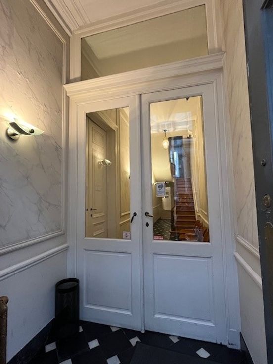 Celui-ci est un petit bureau de +/- 6 m2 parquet, hauts plafonds;....