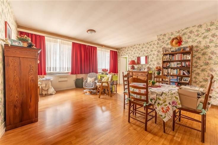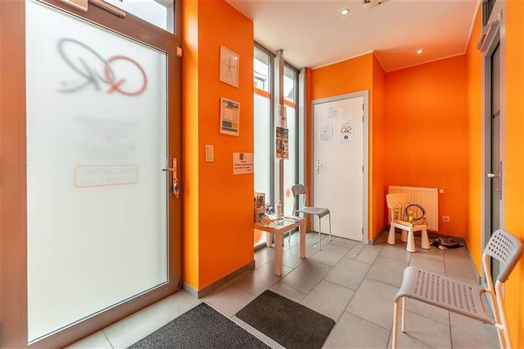 La pièce principale, lumineuse et moderne, est mise en valeur par sa décoration contemporaine avec des accents de couleur vive, apportant une atmosphère dynamique et accueillante. Le sol en carrelage de qualité souligne le caractère pratique et facile d'entretien du lieu.