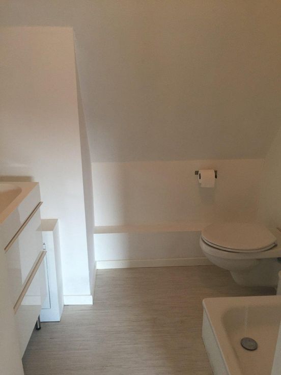 Second niveau: chambre + salle de bain (douche, wc, lavabo).