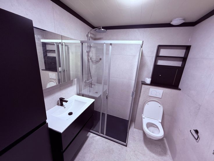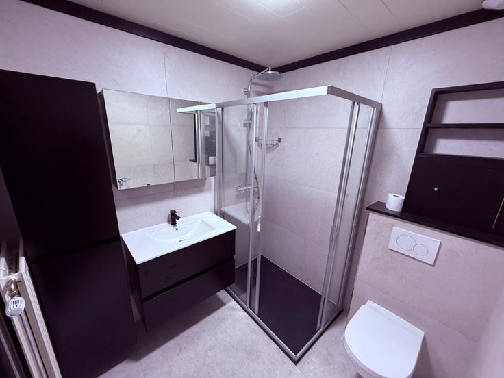 -1 : salle de douche avec WC, chambre à coucher, balcon.
