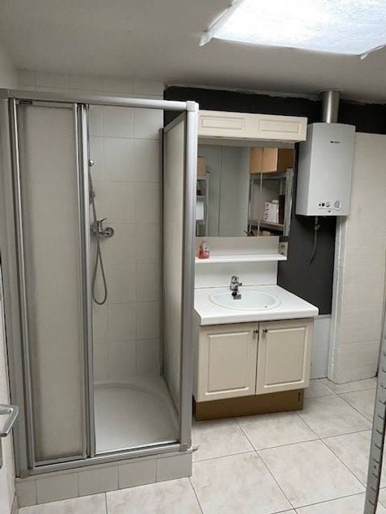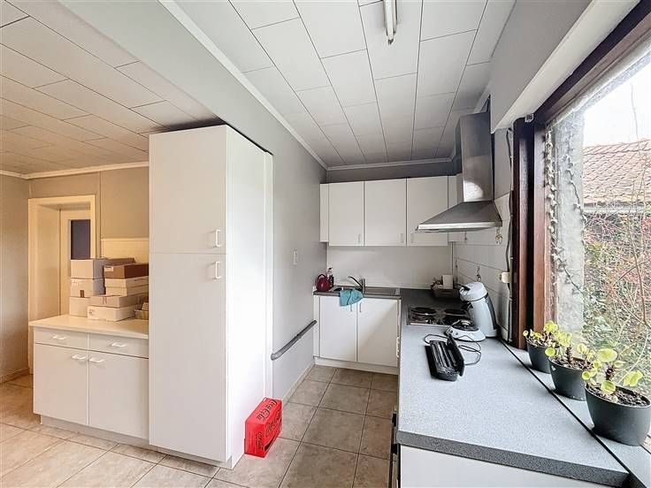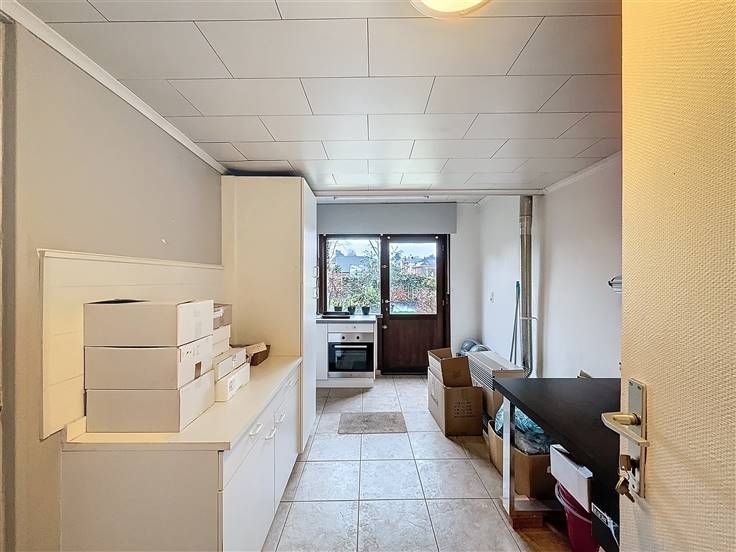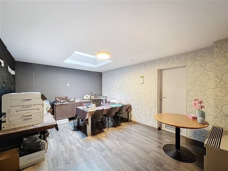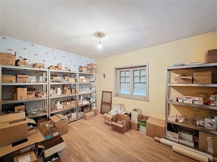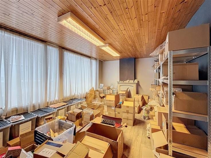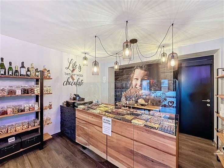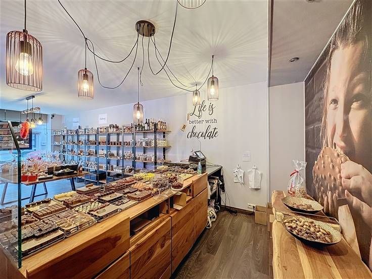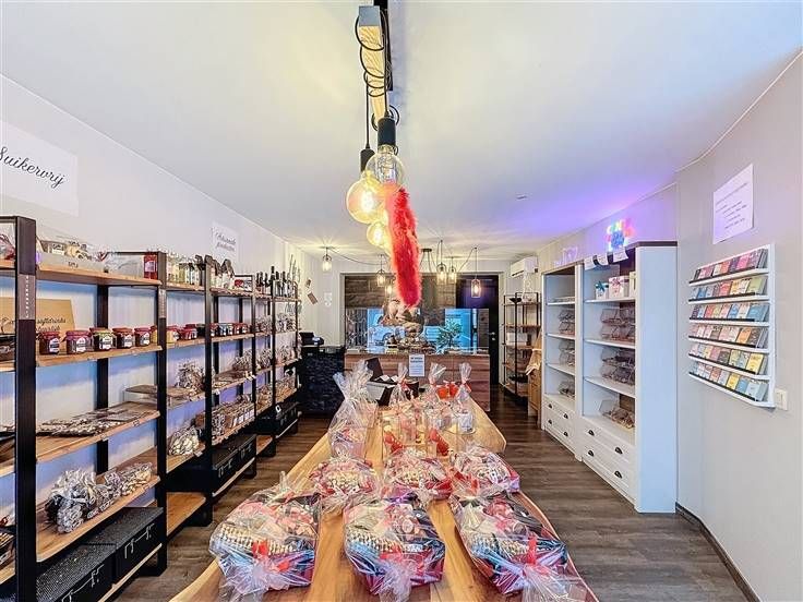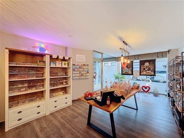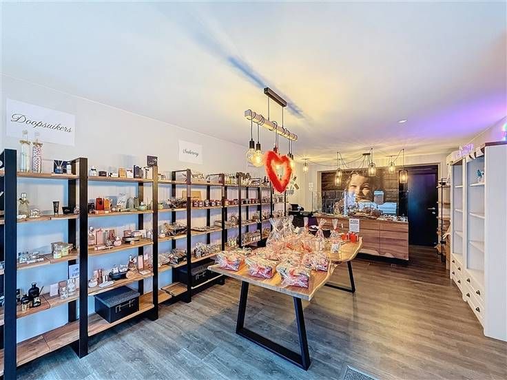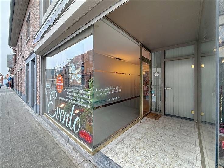 Inkom met etalage, handelsruimte met een apart bureel, apart toilet, keuken, badkamer, 3 slaapkamers en een kelder.