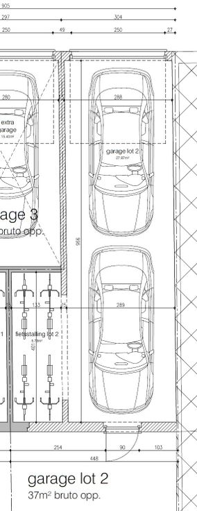 Er is mogelijkheid om een dubbele (in de diepte) garagebox met fietsenstalling aan te kopen!