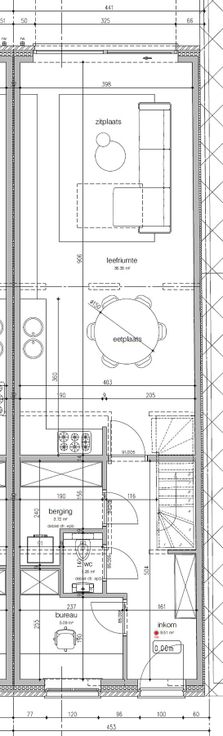 Deze nieuwbouwwoning (rechter woning) omvat op het gelijkvloers een ruime inkomhal, gastentoilet, bureel- of hobbyruimte, berging/wasplaats, lichtrijke woonkamer met open uitzicht op de achterliggende tuin en open ingerichte keuken. Op de eerste verdieping is er de nachthal met 2 zeer ruime slaapkamers en een ingerichte badkamer. De tweede vaste trap brengt u naar de dakverdieping waar de 3e kamer zich bevindt, alsook de zolderberging. De stadstuin is zuidwest gericht en voorzien van terras.