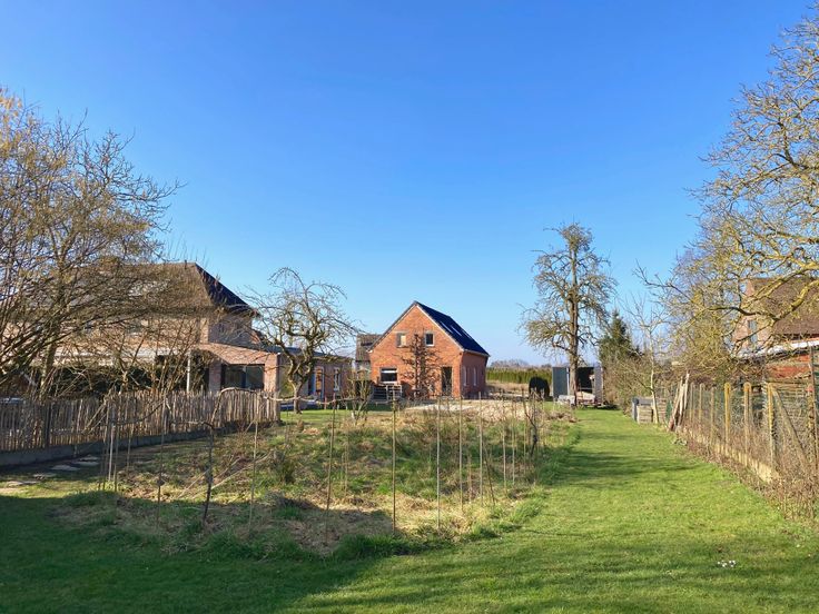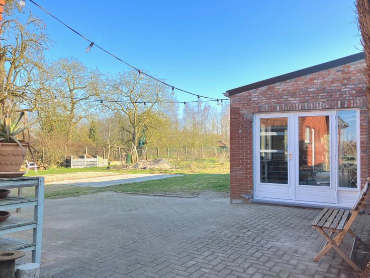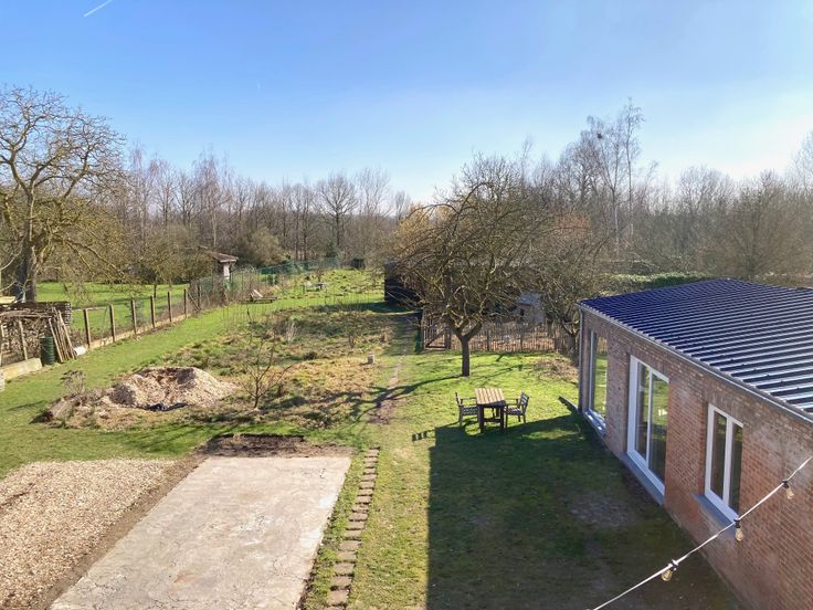 Zowel de woning als het bijgebouw kijken uit op een imposante tuin met o.a. fruitbomen en een moestuin. De tuin is omringd door bomen en biedt veel privacy. Er is plaats genoeg voor het houden van dieren. Achteraan de tuin vormt een beekje de perceelgrens.