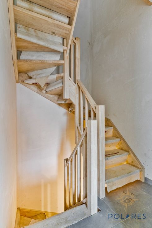 Deze woning met 4 slaapkamers wordt verkocht onder het registratiestelsel en NIET onder het Btw-stelsel. Ze bevindt zich in een landelijke omgeving, nabij het centrum en vlakbij winkels, scholen, opritten E40/E314….en tal van fiets- en wandelmogelijkheden. Deze moderne en energiezuinige woning (ca. E-peil 30) wordt gebouwd met duurzame kwaliteitsmaterialen en voorzien o.a. warmtepomp, zonnepanelen, ventilatiesysteem C+, vloerverwarming, regenwaterput… De woning is als volgt ingedeeld: Op de gelijkvloerse verdieping bevindt zich een ruime garage met een aparte bergplaats. Van hieruit kan je naar de bovenliggende verdieping waar u binnenkomt in een aangename en lichtrijke leefruimte die in rechtstreekse verbinding staat met de tuin. Verder is er een geïnstalleerde keuken voorzien van alle toestellen, een apart toilet en een aparte bergruimte. Op de tweede verdieping vinden we 4 ruime slaapkamers, een apart toilet, een technische ruimte en een zeer ruime badkamer (Douche, ligbad en dubbele lavabo). Dankzij de ruime garage beschikt u over voldoende bergruimte. Hier kunnen, buiten de wagen, enkele fietsen worden geplaatst. De tuin en terras bieden voldoende privacy en genieten van een zonnige oriëntatie. Deze zijn aan te leggen door de koper. Extra: Aansluitingskosten (+- 5.000 euro) zijn nog ten laste van de kopende partij. Voor meer details (plannen, bestek) kan u de makelaar contacteren 0492/480.388 of farid@polares.eu